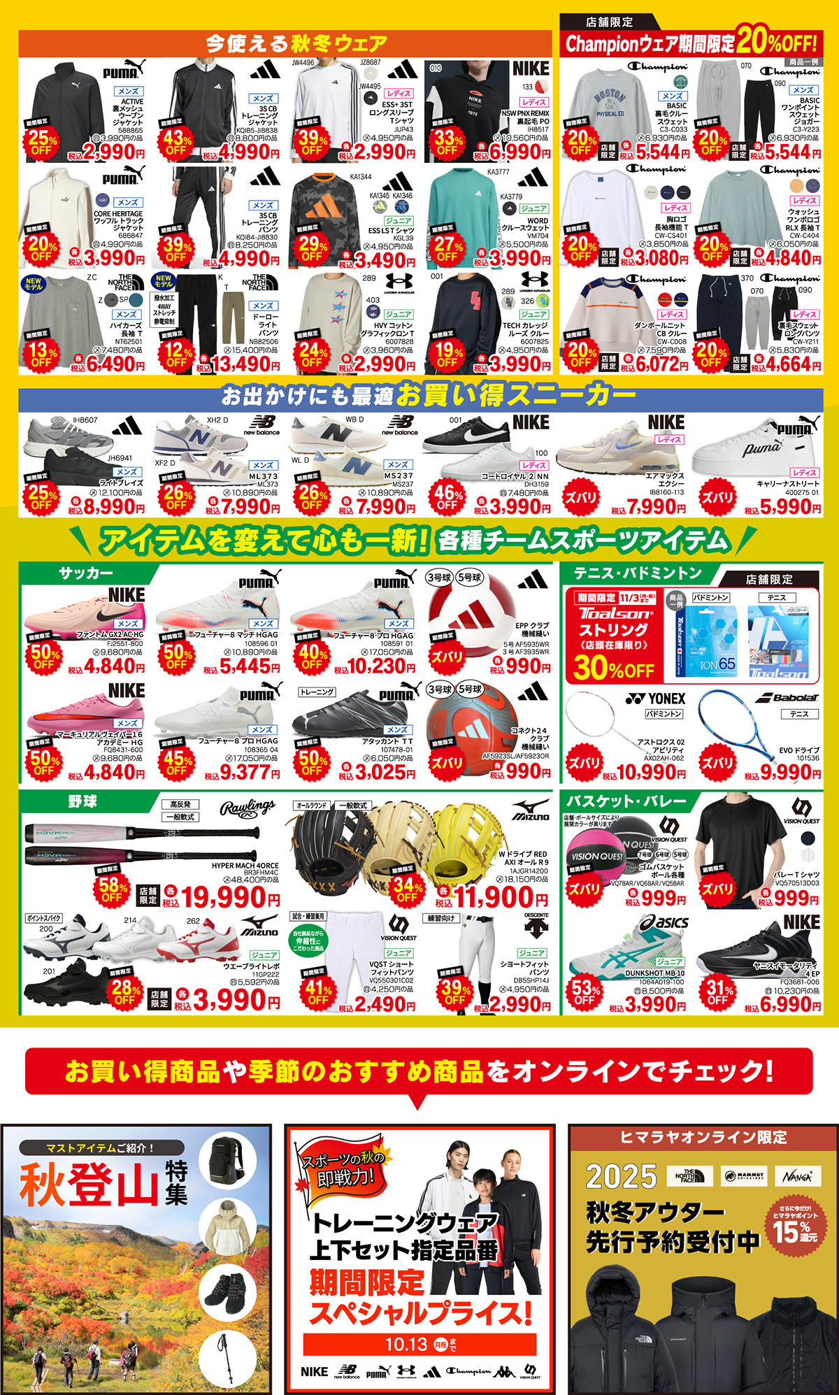 B館1階 ヒマラヤ SPORTS & GOLF アピタ稲沢店スポーツの秋応援SALE