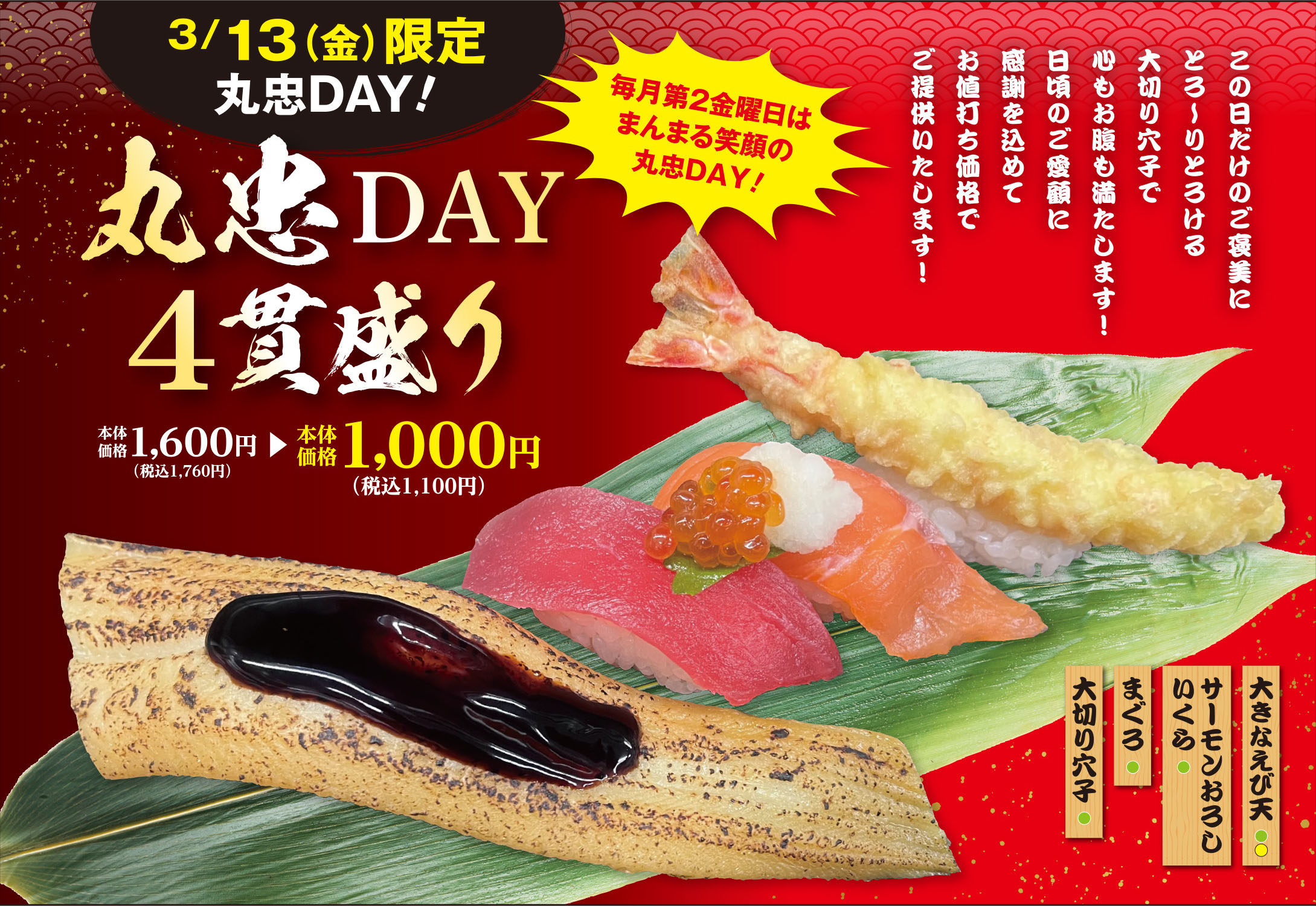 B館1階 海転寿司丸忠3月寿司祭り・丸忠デー
