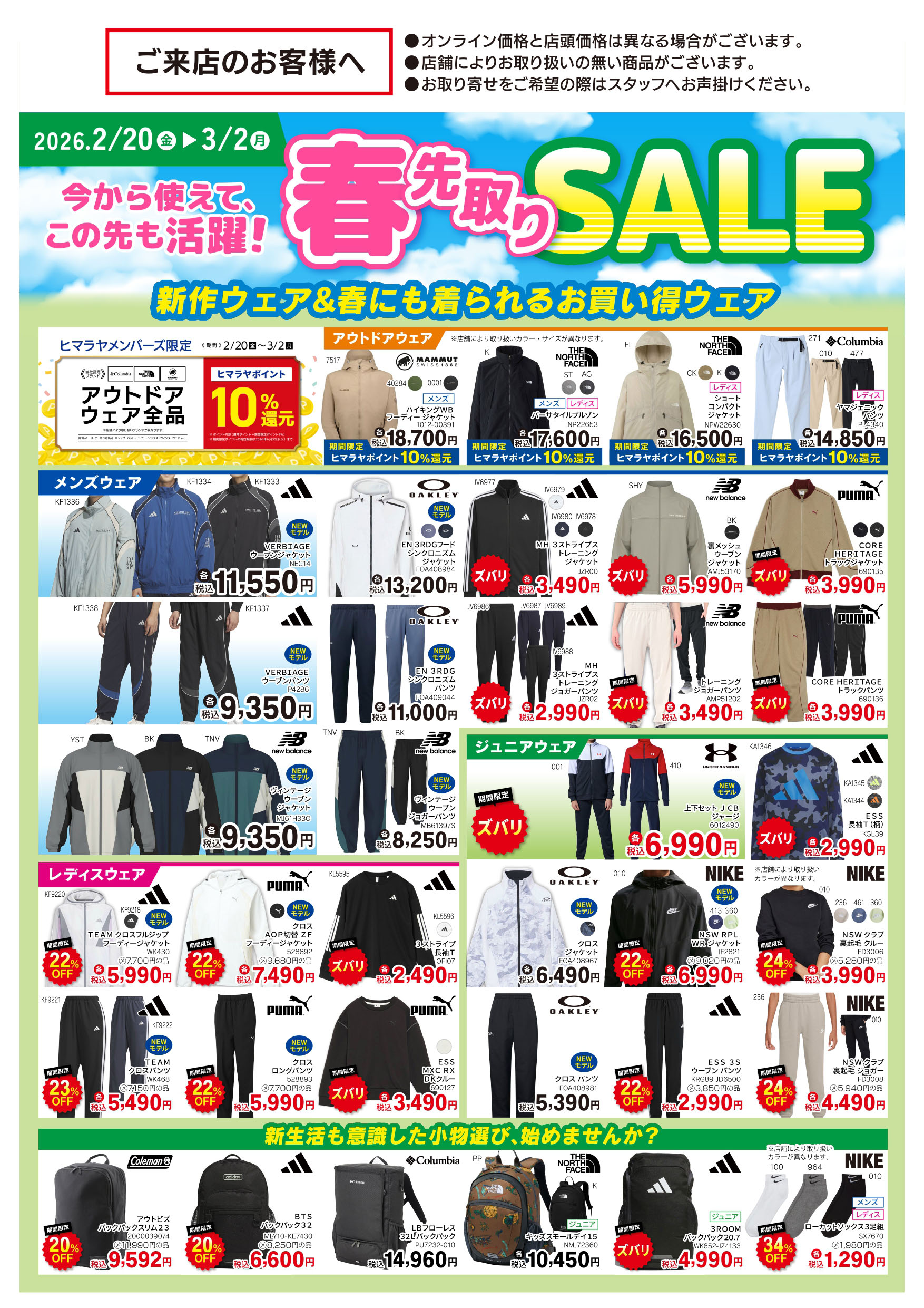 B館1階 ヒマラヤ SPORTS & GOLF アピタ稲沢店春先取りセール